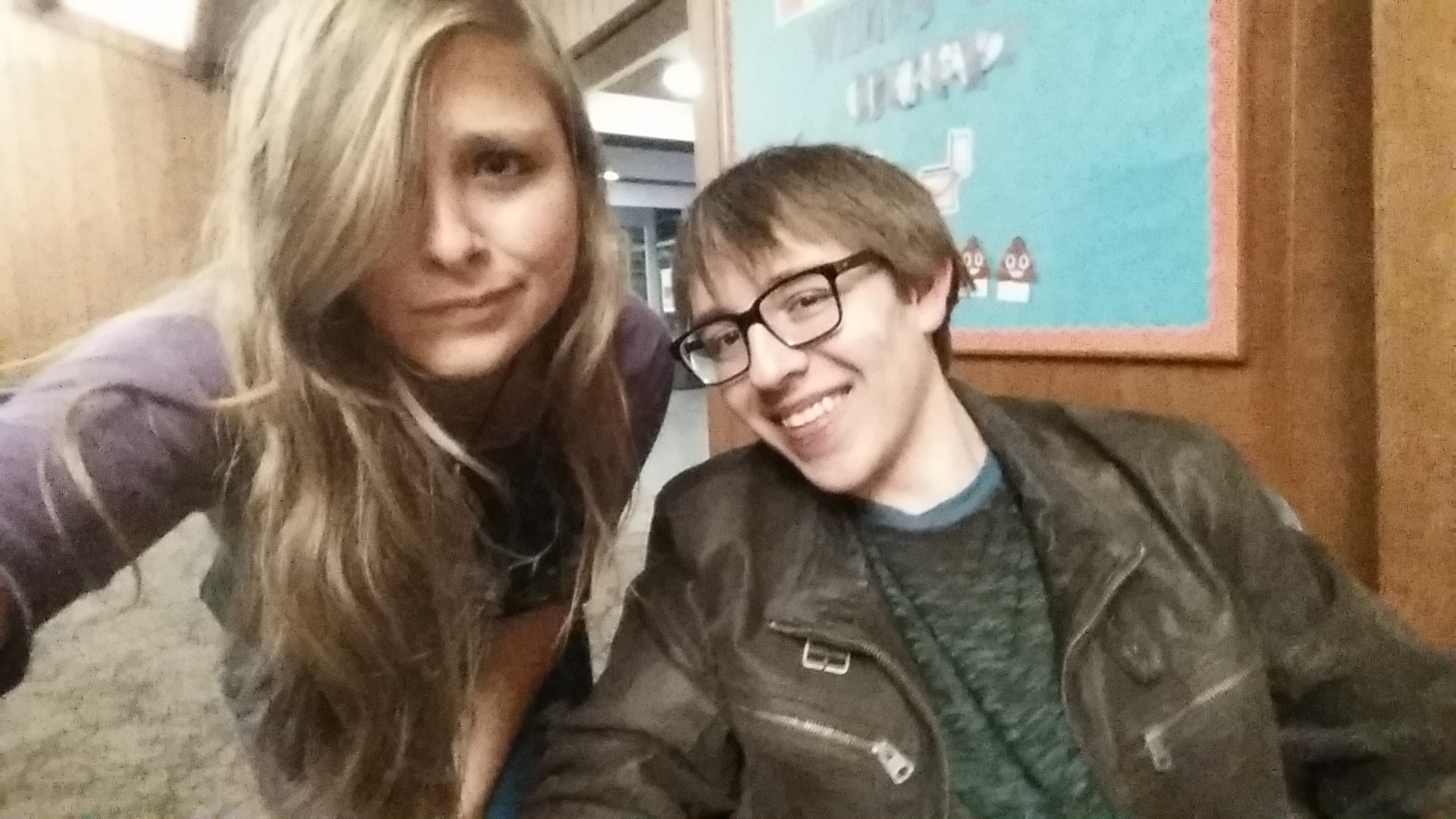 Hey ya'll so Simon and I have been doing a lot of rehearsing this last week. Our first rehearsal we did last week Thursday. We met up for an hour an a half in the Platt-Howard main lounge and just ran lines over and over again. At this point, neither Simon or I were completely memorized so we used the time to become more familiar with the lines together and talk about what sort of props we needed to have and who was going to get/bring what. Here's a picture of us from that day: